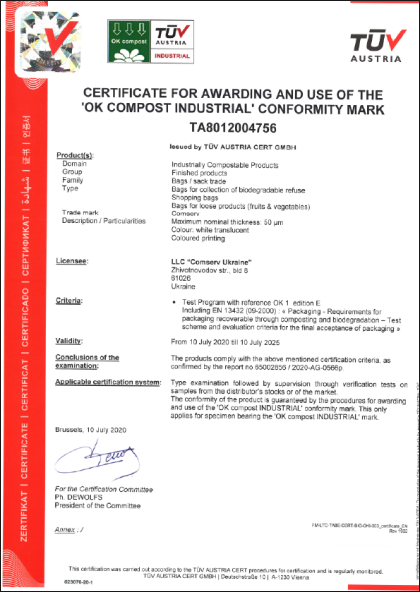 Виданий австрійською компанією TUV Austria у 2020 році.